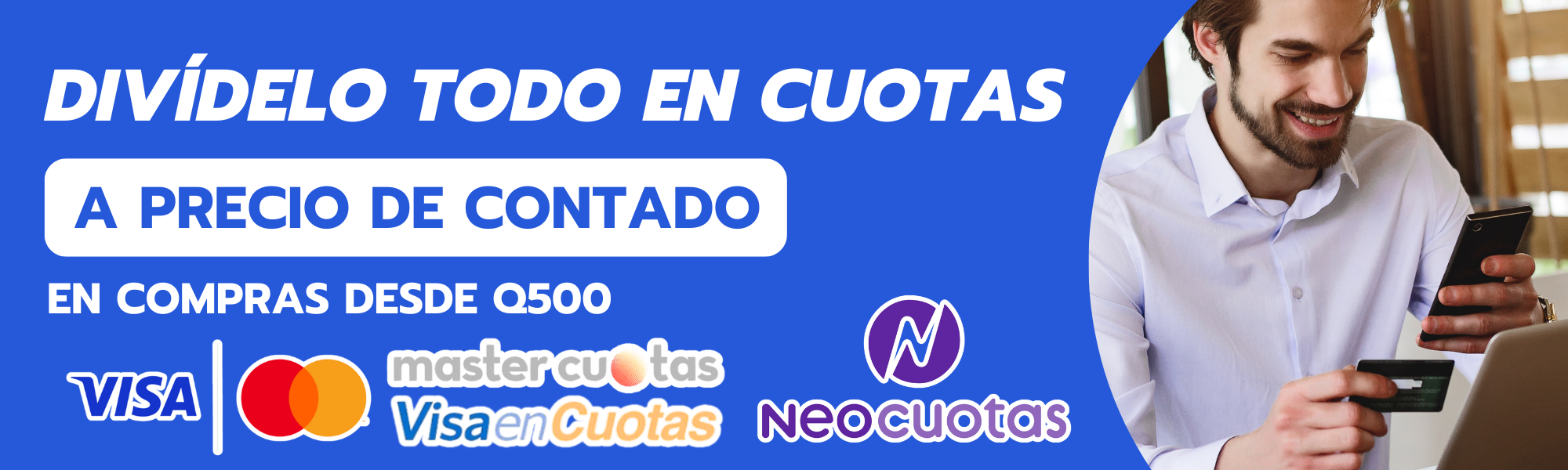 Opciones de pago en efectivo, transferencia inmediata, tarjeta de contado, opción a visacuotas y mastercuotas.